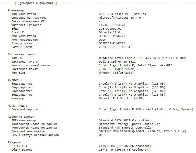- Операційна система: Windows 10 активована вшитим у BIOS ключем