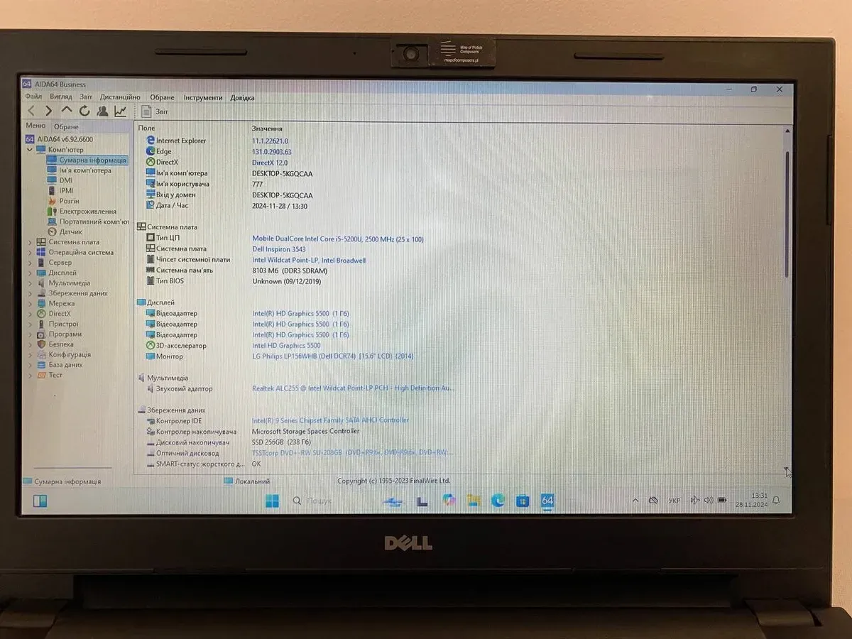 - Графіка: інтегрована Intel HD Graphics 5500 (до 1792 MB з ОЗП)