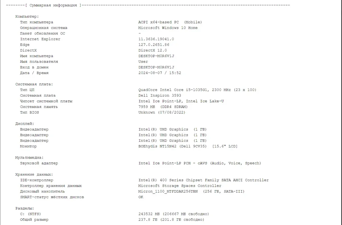 - Операційна система: Windows 10 активована вшитим у BIOS ключем