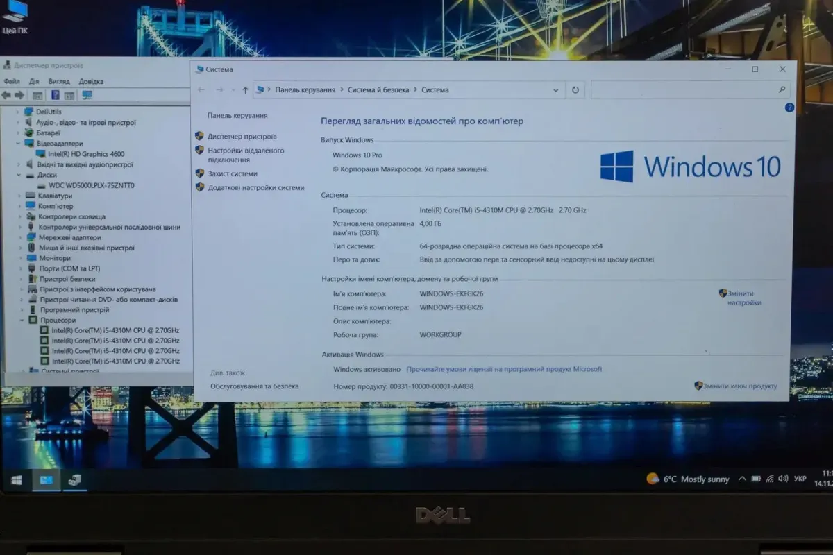 - Процесор: Intel Core i5-4310M (2 (4) ядра по 2.7 - 3.4 GHz), 3 MB Smart Cache