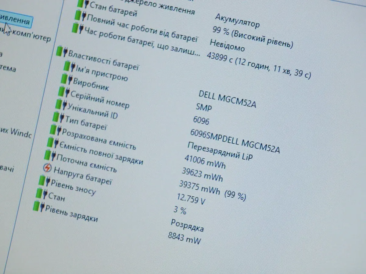 - Батарея: щонайменше 4-7 години в режимі звичайного навантаження, 3% знос.