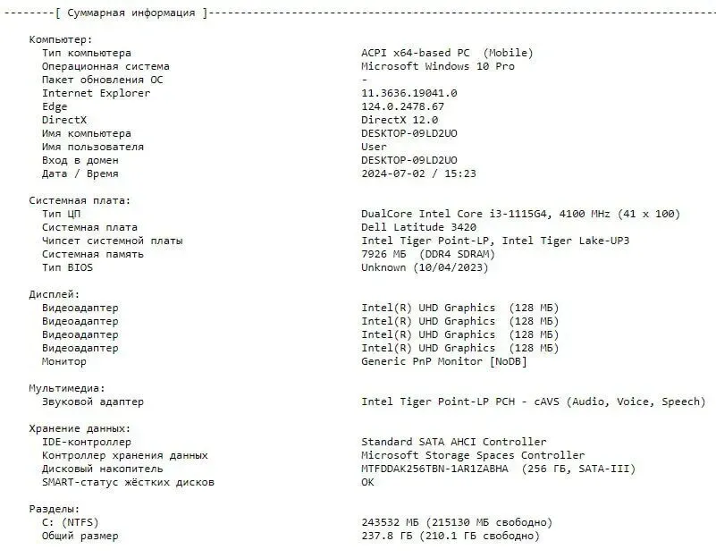 - Операційна система: Windows 10 активована вшитим у BIOS ключем