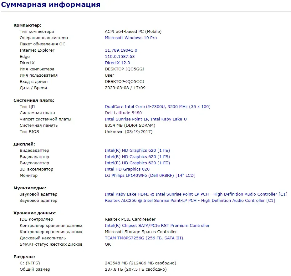 - Операційна система: Windows 10 активована вшитим в BIOS ключем