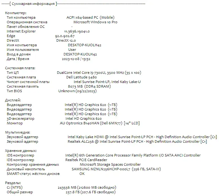 - Операційна система: Windows 10 активована вшитим у BIOS ключем
