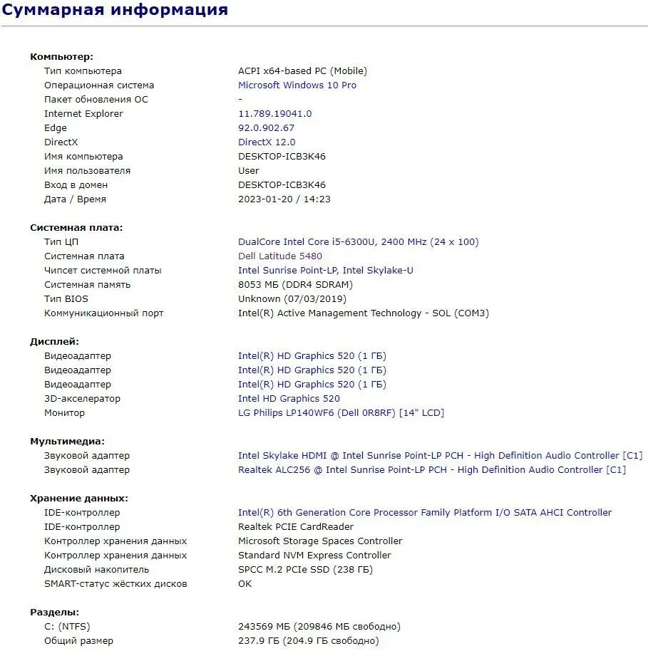 - Модель: Dell Latitude 5480