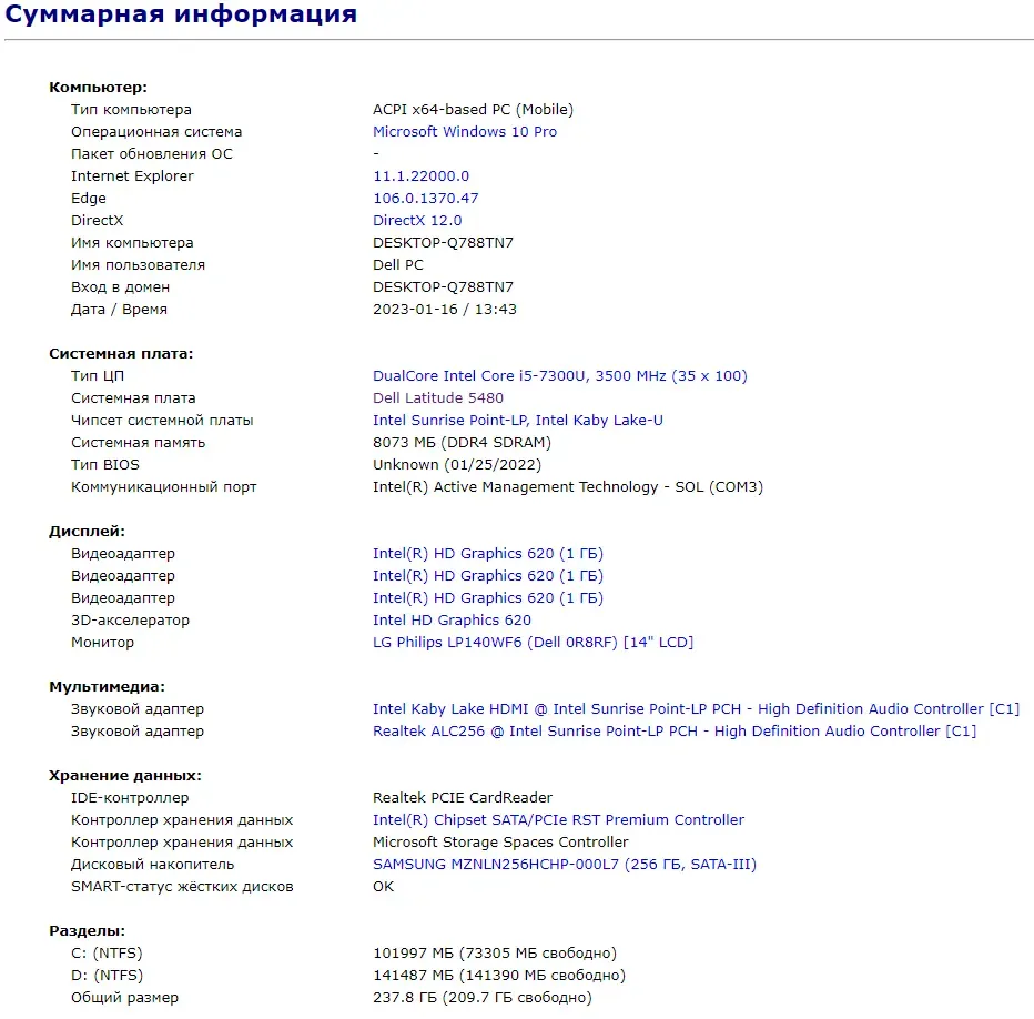 - Модель: Dell Latitude 5480