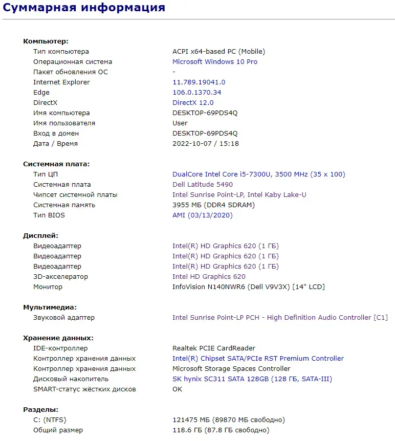 - Операційна система: Windows 10 активована вшитим у BIOS ключем