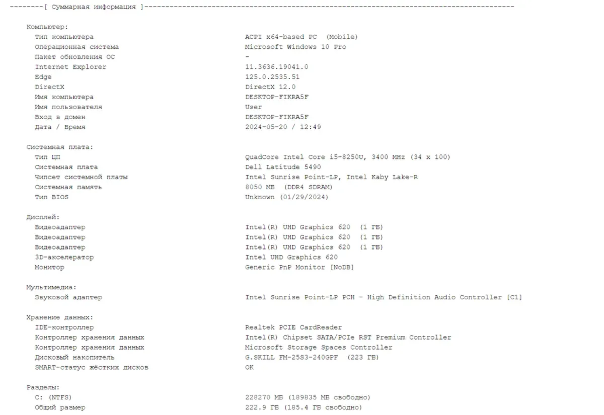 - Модель: Dell Latitude 5490