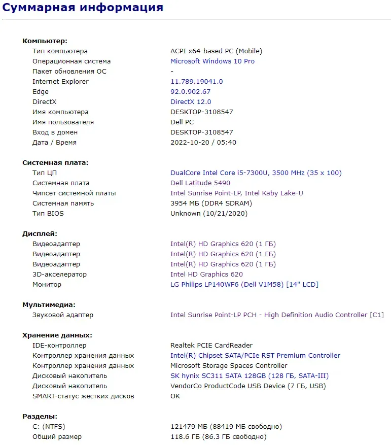 - Операційна система: Windows 10 активована вшитим в BIOS ключем