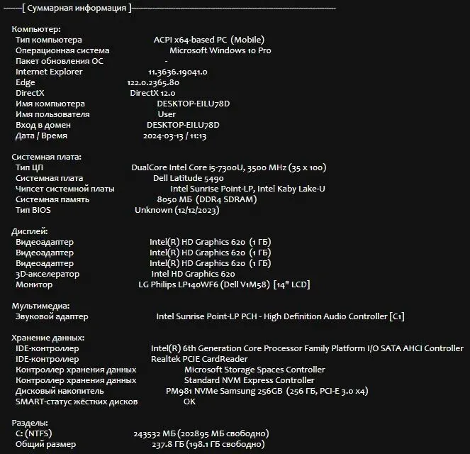- Операційна система: Windows 10 активована вшитим у BIOS ключем