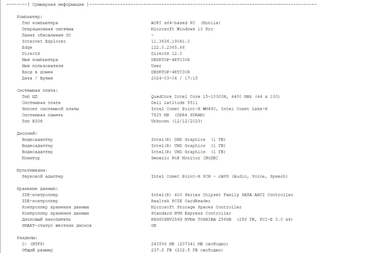 - Процесор: Intel Core i5-10300H (4 (8) ядра по 2.5 - 4.5 GHz), 8 MB Smart Cache