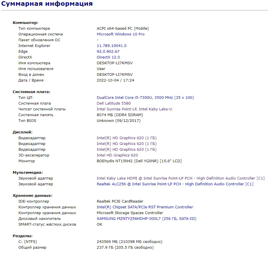 - Операційна система: Windows 10 активована вшитим в BIOS ключем