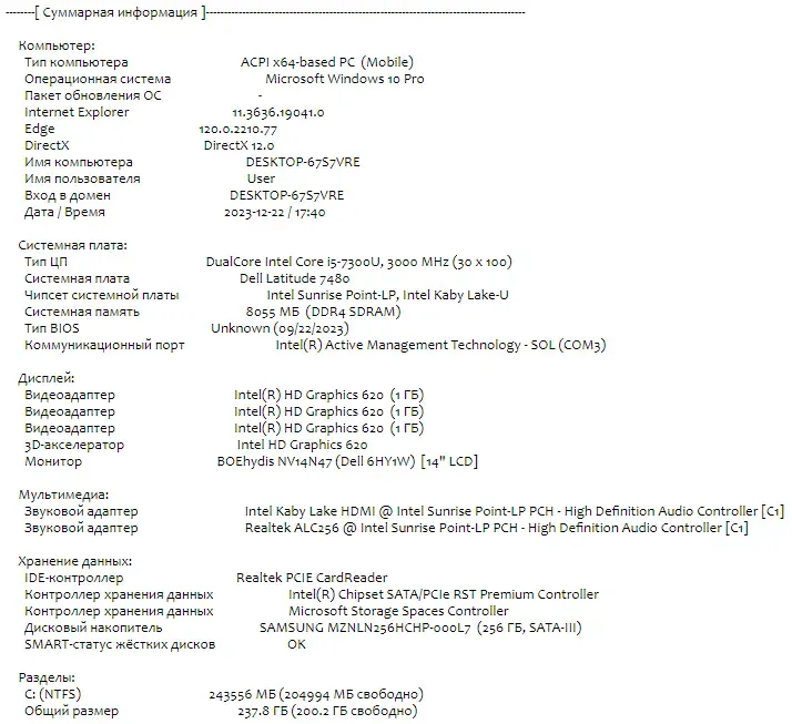 - Постійна пам'ять: 256 GB SSD M.2 (Samsung MZNLN256HCHP-000L7)