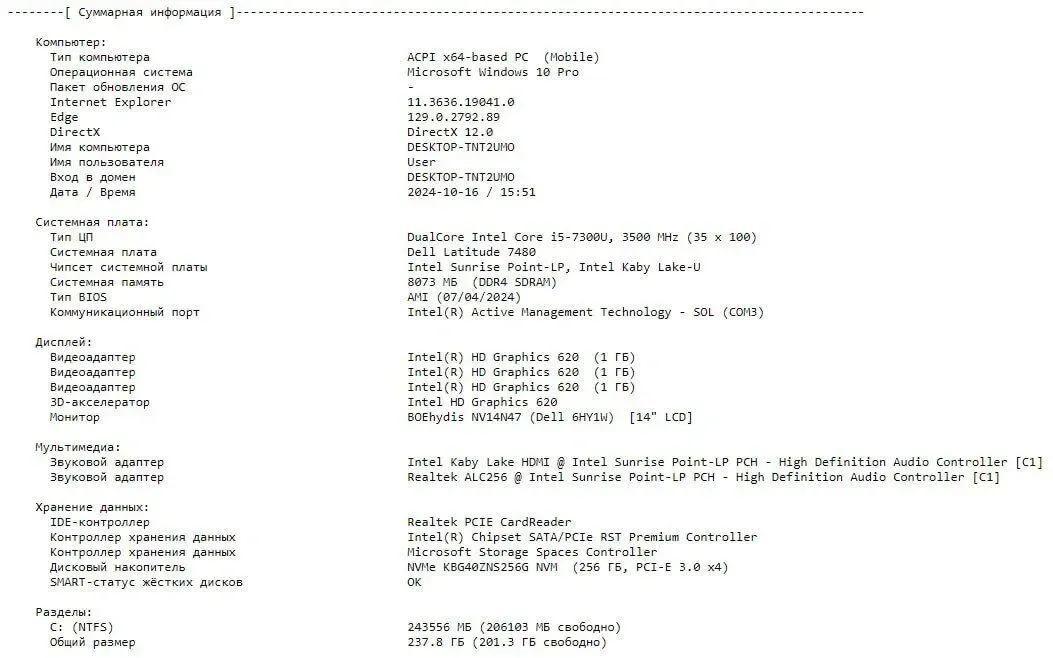 - Процесор: Intel Core i5-7300U (2 (4) ядра по 2.6 - 3.5 GHz), 3 MB Smart Cache