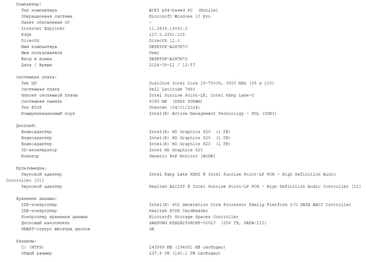 - Постійна пам'ять: 256 GB SSD M.2 (Samsung MZNLN256HCHP-000L7)