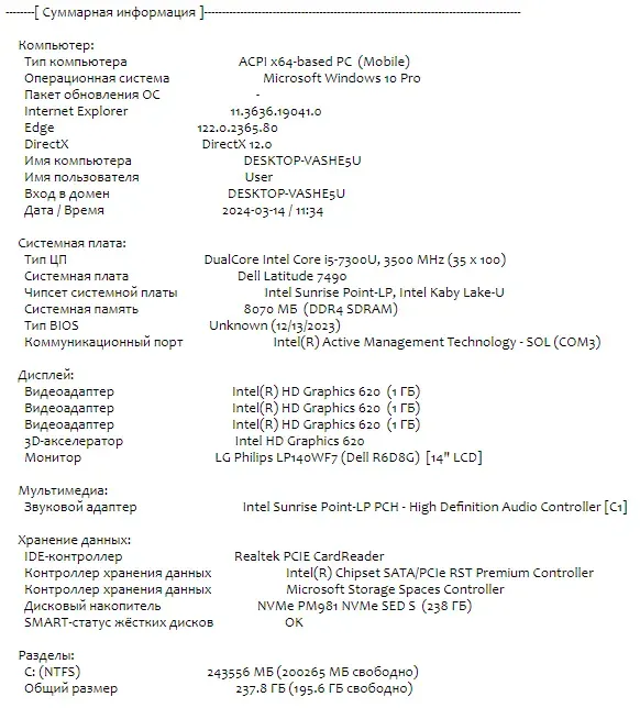 - Постійна пам'ять: 240 GB SSD M.2 NVMe (Samsung PM981)