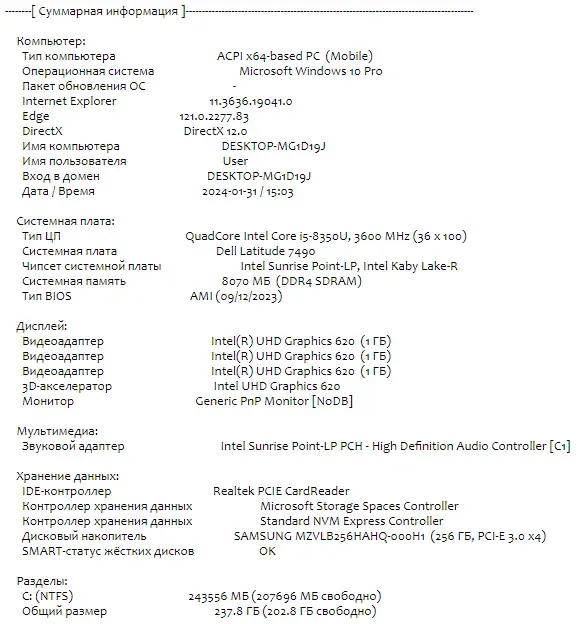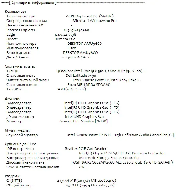 - Графіка: інтегрована Intel UHD Graphics 620 (до 1792 MB з ОЗУ)