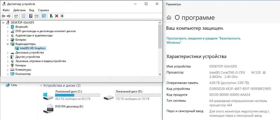 - Процесор: Intel Core i5-520M (2 (4) ядра по 2,4 - 2,93 ГГц), 3 МБ Smart Cache