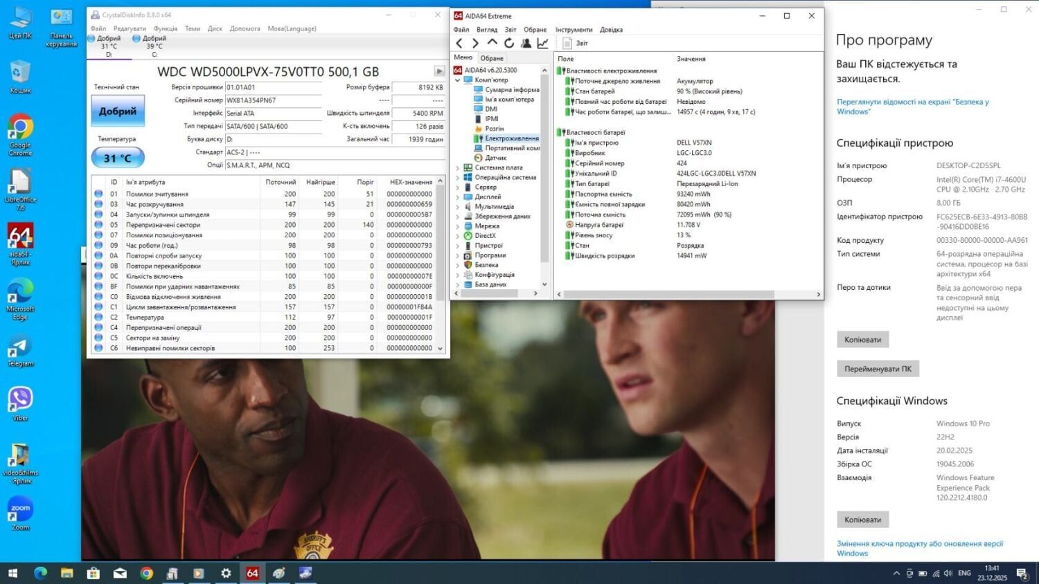 - Комплектація: ноутбук, зарядний пристрій, наклейки на клавіатуру
