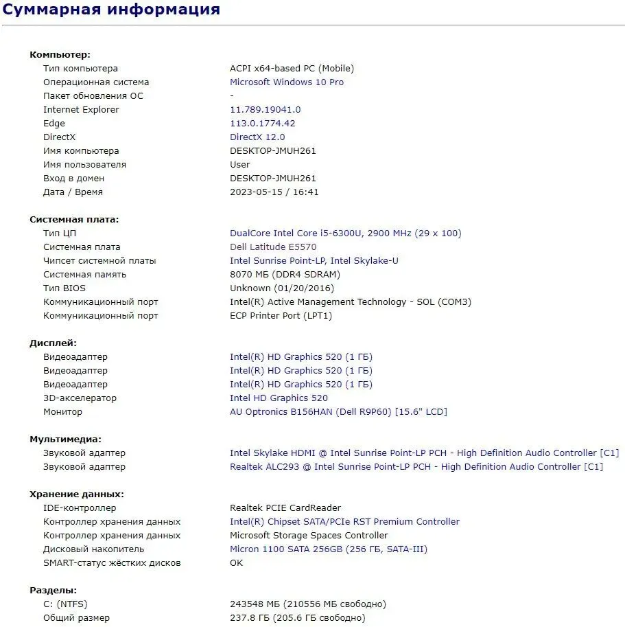 - Модель: Dell Latitude E5570