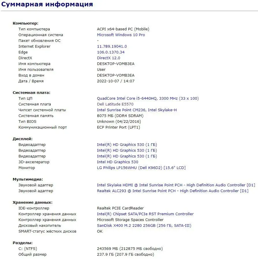 - Модель: Dell Latitude E5570