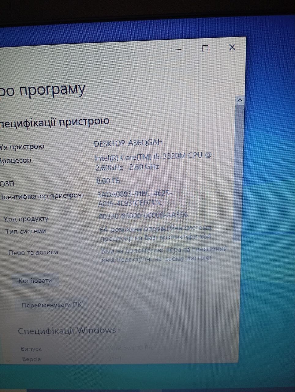 - Процесор: Intel Core i5-3320M (2 (4) ядра з тактовою частотою 2,6–3,3 ГГц), 3 МБ Smart Cache
