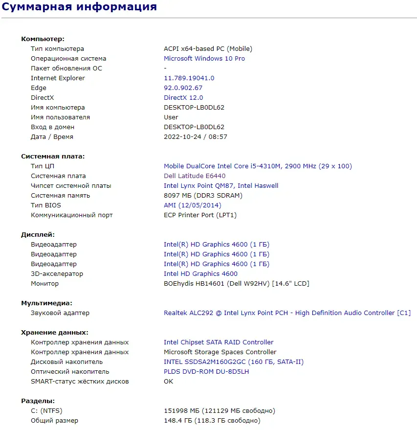 - Модель: Dell Latitude E6440