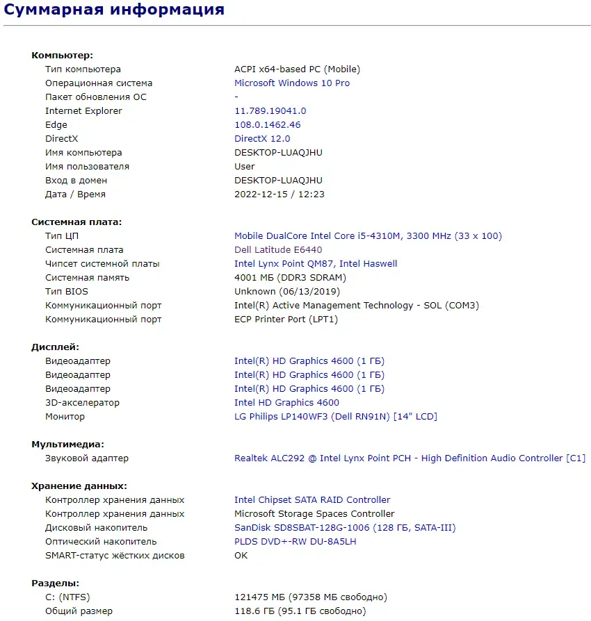 Короткі характеристики:Ноутбук Б-клас Dell Latitude E6440 / 14" (1920x1080) IPS / Intel Core i5-4310M (2 (4) ядра по 2.7 - 3.4 GHz) / 4 GB DDR3 / 128 GB SSD / Intel HD Graphics 4600 / WebCam / DVD-RW / HDMI / Windows 10 лицензия