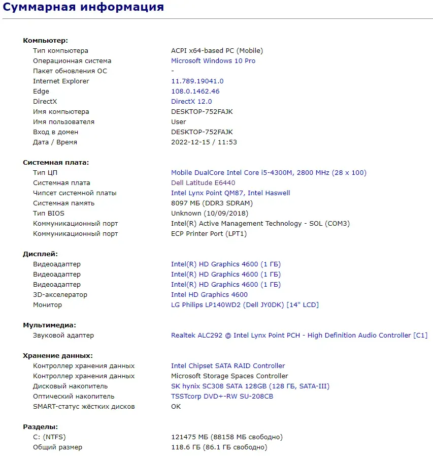 - Графіка: інтегрована Intel HD Graphic 4600 (до 1792 MB з ОЗУ)