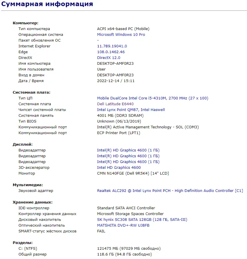 Короткі характеристики:Ноутбук Б-клас Dell Latitude E6440 / 14" (1600x900) TN / Intel Core i5-4310M (2 (4) ядра по 2.7 - 3.4 GHz) / 4 GB DDR3 / 128 GB SSD / Intel HD Graphics 4600 / WebCam / DVD-RW / HDMI / Windows 10 лицензия