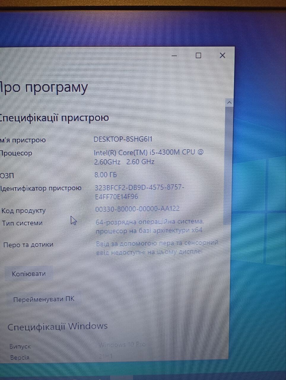 - Процесор: Intel Core i5-4300M (2 (4) ядра по 2.6 - 3.3 GHz), 3 MB Smart Cache