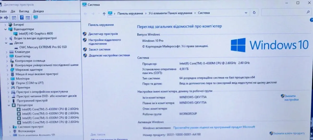 - Процесор: Intel Core i5-4300M (2 (4) ядра по 2.6 - 3.3 GHz), 3 MB Smart Cache