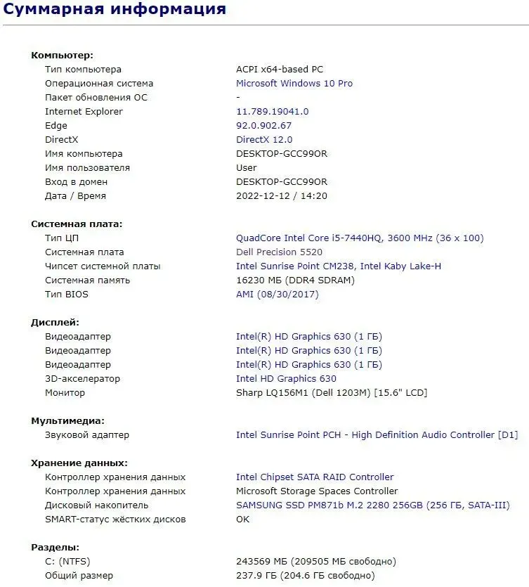 Короткі характеристики:Ноутбук Б-клас Dell Precision 5520 / 15.6" (1920x1080) IPS / Intel Core i5-7440HQ (4 ядра по 2.8 - 3.8 GHz) / 16 GB DDR4 / 256 GB SSD M.2 / Intel HD Graphics 630 / WebCam / HDMI / Windows 10 лицензия
