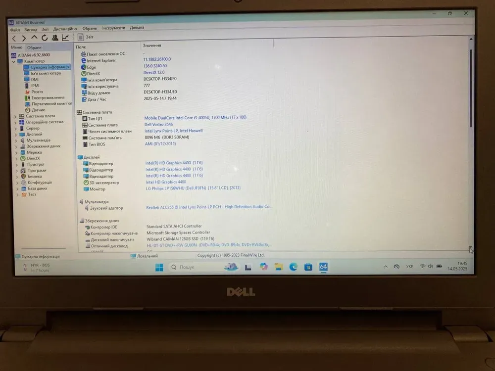 - Модель: Dell Vostro 3546