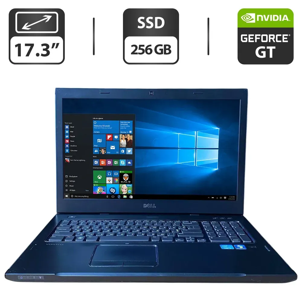 Ноутбук Б-клас Dell Vostro 3750 / 17.3" (1600x900) TN / Intel Core i5-2410M (2 (4) ядра по 2.3 - 2.9 GHz) / 8 GB DDR3 / 256 GB SSD / nVidia GeForce GT 525M, 1 GB GDDR3, 128-bit / WebCam / DVD-ROM б/в