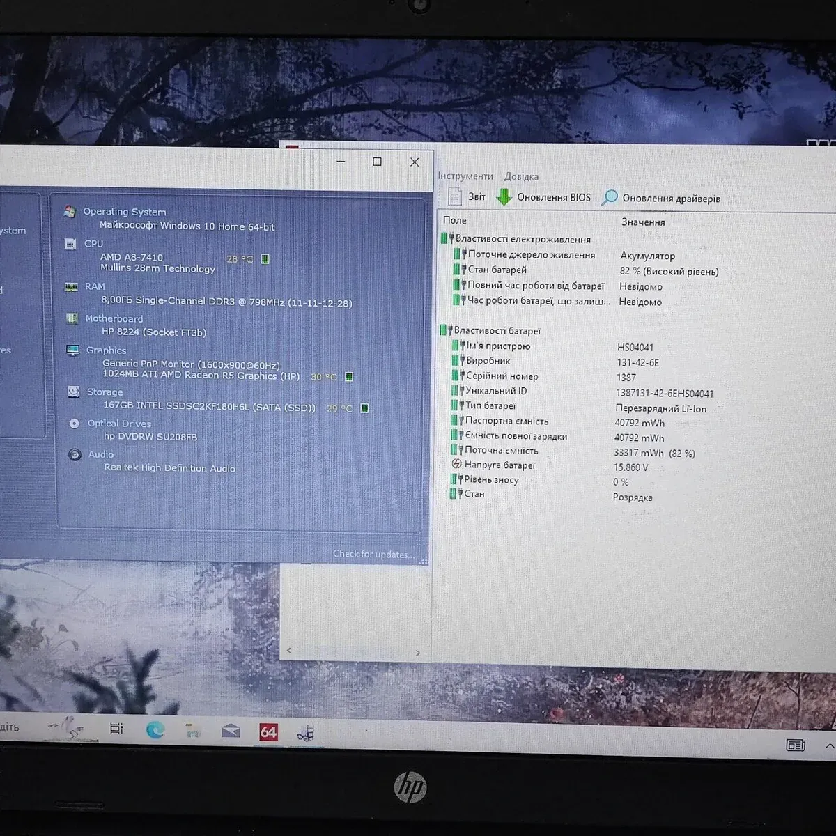 - Процесор: AMD A8-7410 (4 ядра по 2.2 - 2.5 GHz), 2 MB Cache