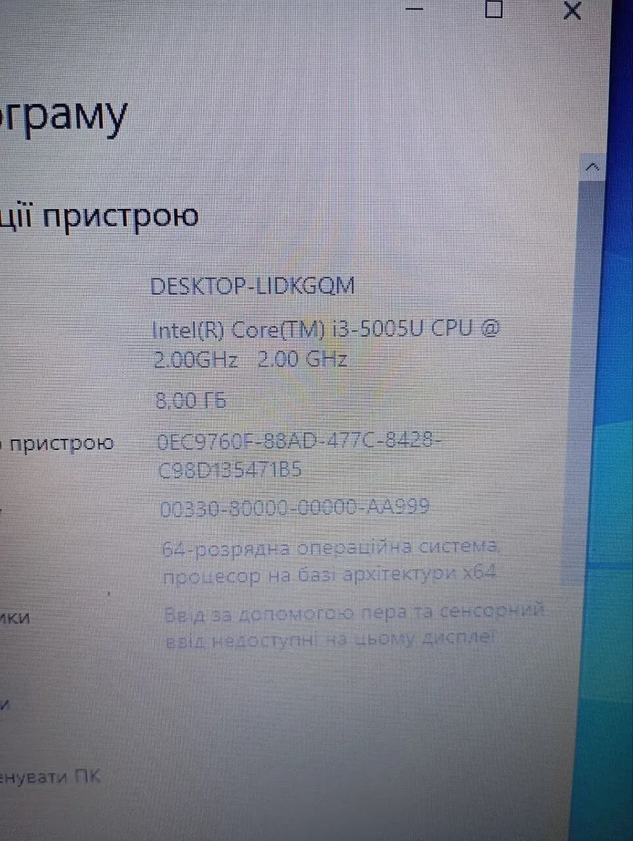 - Процесор: Intel Core i3-5005U (2 (4) ядра з тактовою частотою 2,0 ГГц), 3 МБ Smart Cache
