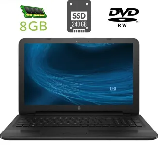 Ноутбук Б-клас HP 250 G5 / 15.6" (1366x768) TN / Intel Celeron N3060 (2 ядра по 1.6 - 2.48 GHz) / 8 GB DDR3 / 240 GB SSD / Intel HD Graphics 400 / WebCam / DVD-RW / HDMI б/в