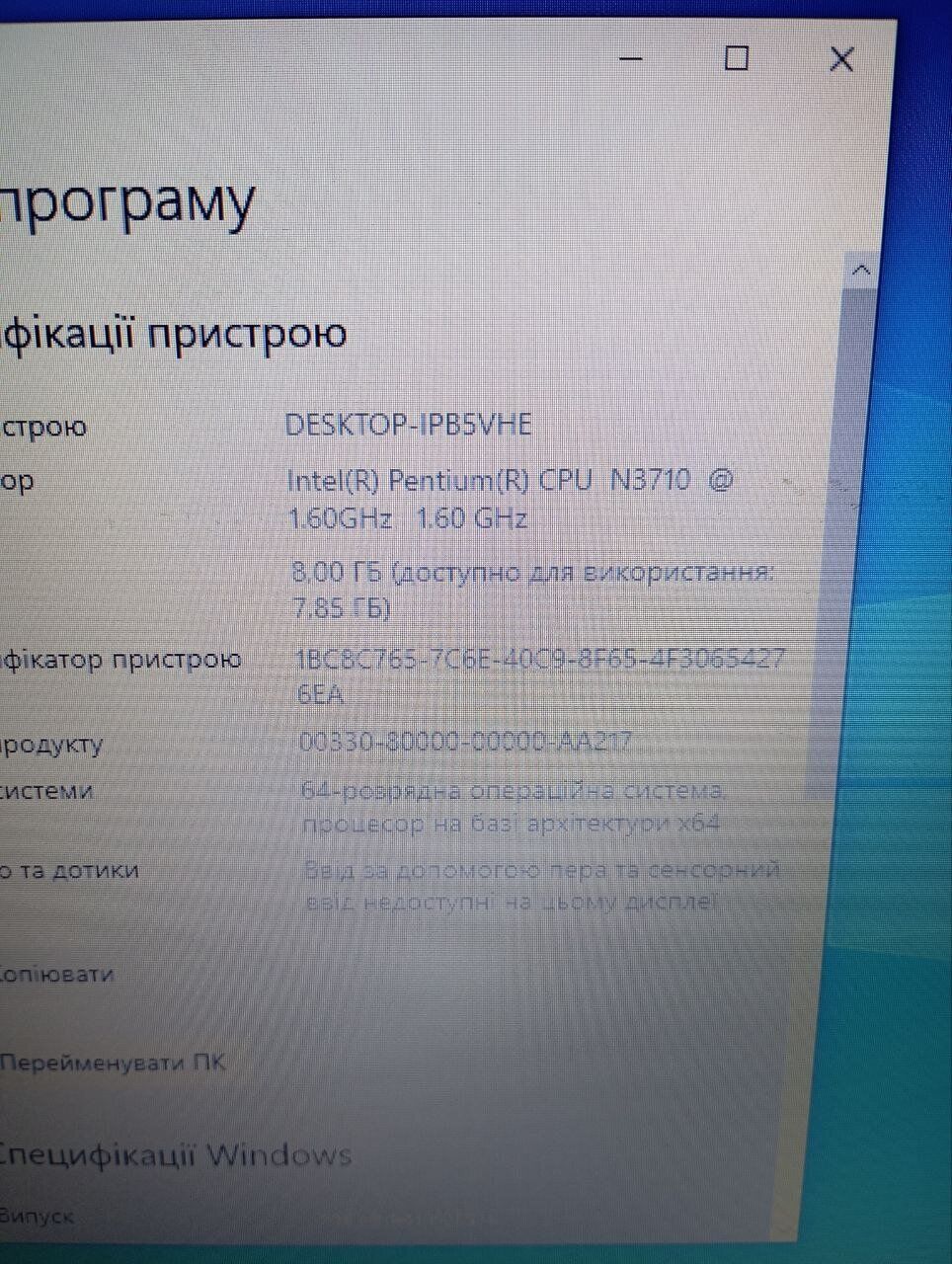 Процесор:Intel Pentium N3710