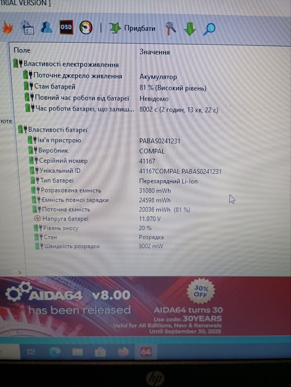 - Комплектація: ноутбук, зарядний пристрій, наклейки на клавіатуру