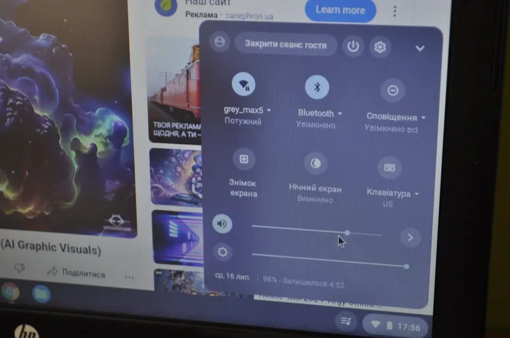 - Комплектація: ноутбук, зарядний пристрій, наклейки на клавіатуру