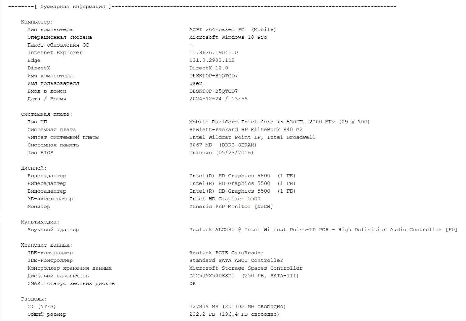 - Постійна пам'ять: 250 GB SSD (CT250MX500SSD1)