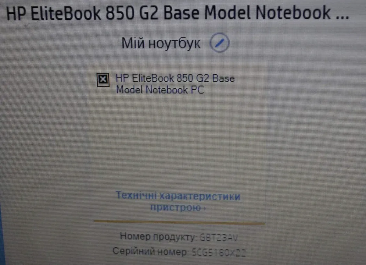 - Модель: HP EliteBook 850 G2