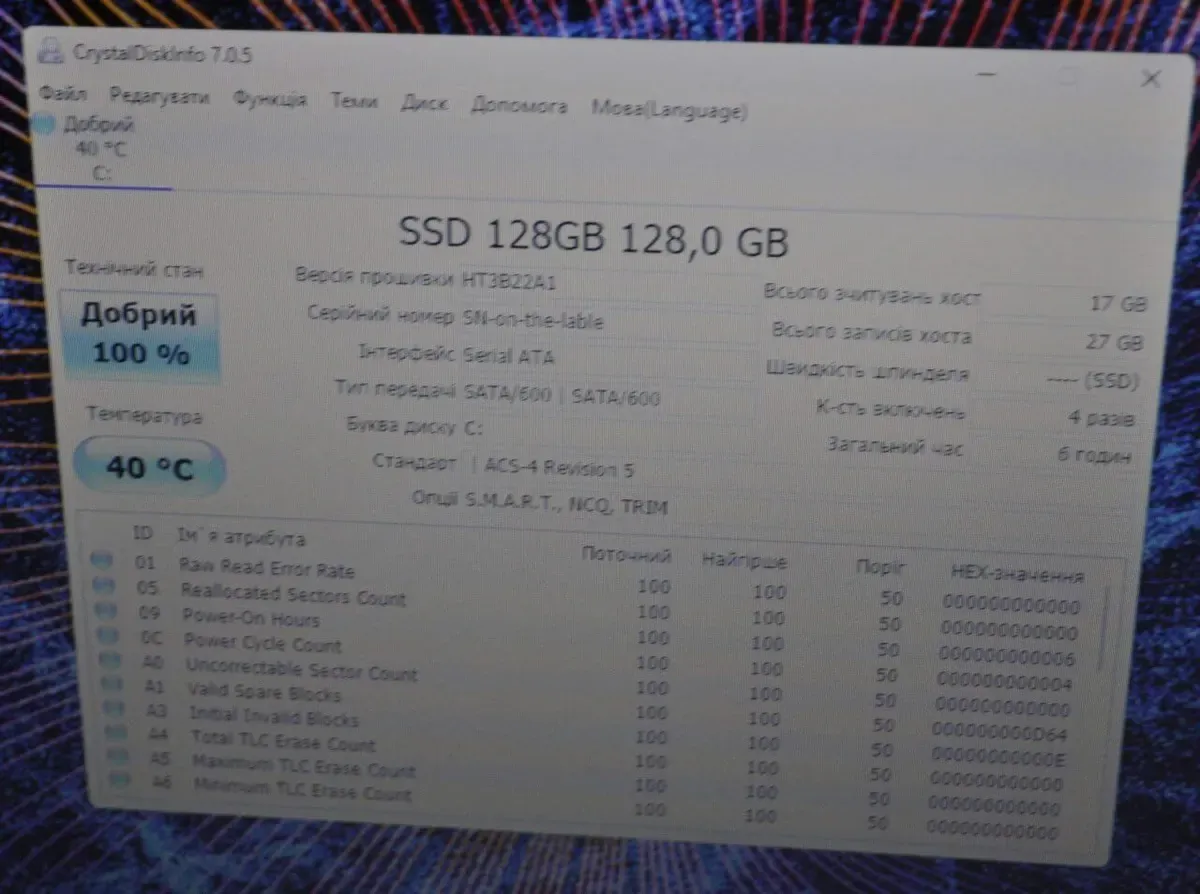 - Встановлено SSD на 120 GB