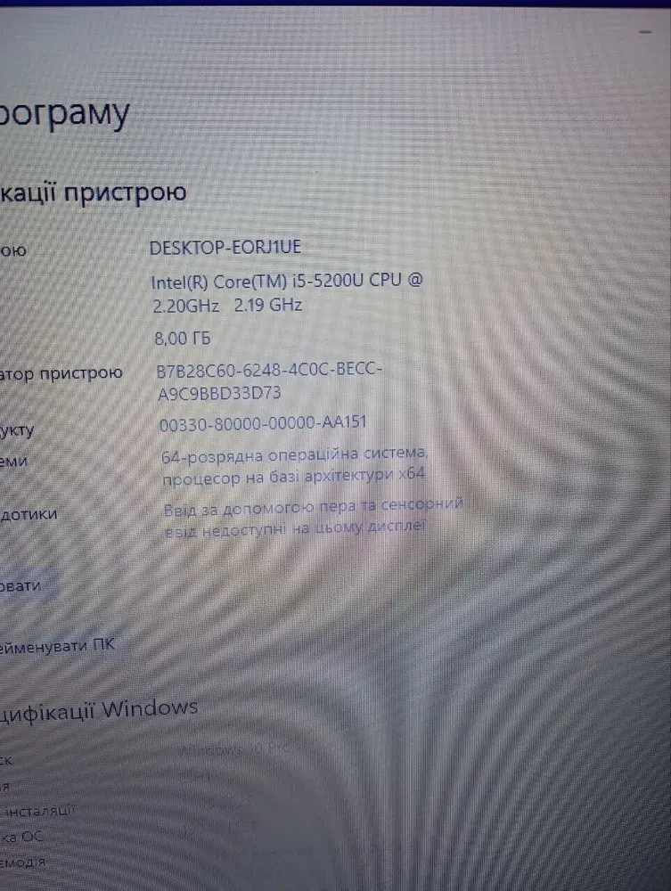 - Процесор: Intel Core i5-5200U (2(4) ядра по 2.2 - 2.7 GHz), 3 MB Cache