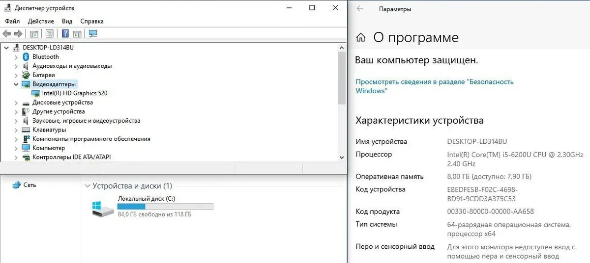 - Процесор: Intel Core i5-6200U (2 (4) ядра з тактовою частотою 2,3–2,8 ГГц), 3 МБ Smart Cache