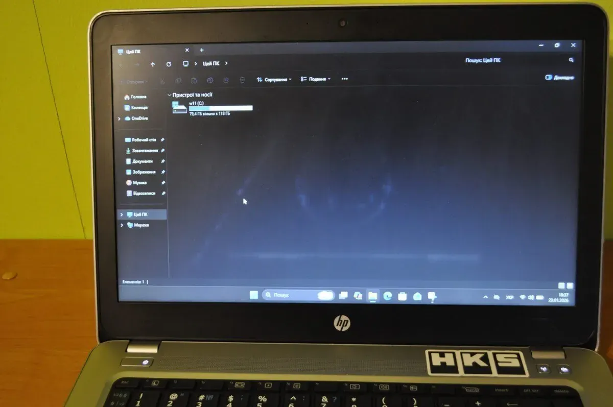 - Комплектація: ноутбук, зарядний пристрій, наклейки на клавіатуру