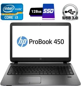 Ноутбук Б клас HP ProBook 450 G2 / 15.6" (1366x768) TN / Intel Core i3-5005U (2 (4) ядра по 2.0 GHz) / 4 GB DDR3 / 128 GB SSD / Intel HD Graphics 5500 / WebCam / USB 3.0 / DVD-RW / HDMI б/в