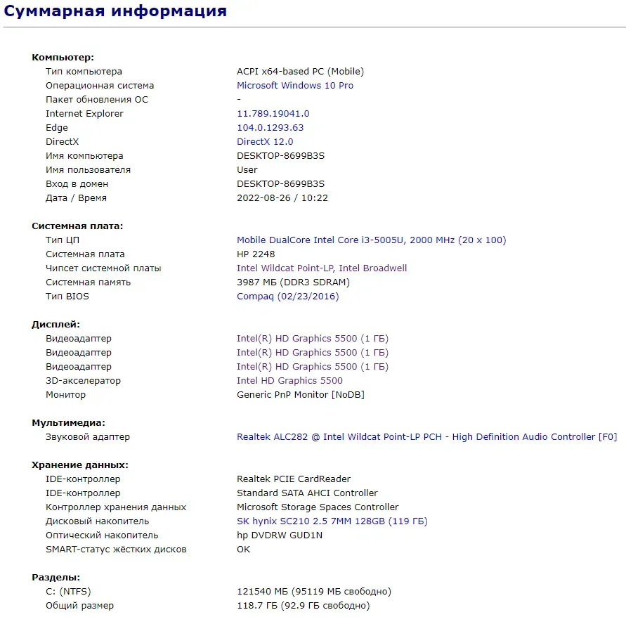 - Процесор: Intel Core i3-5005U (2 (4) ядра по 2.0 GHz), 3 MB Cache