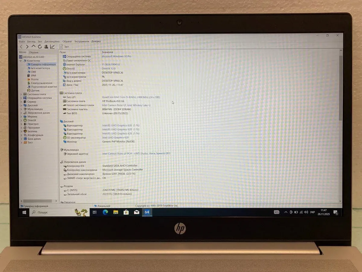 - Процесор: Intel Core i5-8265U (4 (8) ядра з тактовою частотою 1,6–3,9 ГГц), 6 МБ Smart Cache